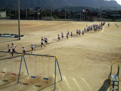 本日は、低・中・高学年、全学年が持久走大会の練習を行いました。