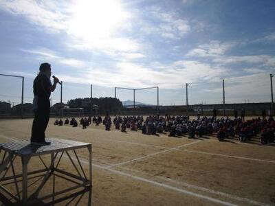 教頭先生の講評。「みんなの応援を受けて力がわきましたね。」どの子にも、沿道の応援は途切れることがありませんでした。
