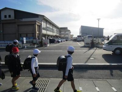 「栗崎団地班は、いつも遠くから大きな声で挨拶ができているよ。他の班もがんばろう!班長さんのリードをお願いします。」と、松川会長さんから励まし、「小学生の元気な挨拶で今日もいい一日になりそう、ありがとう!」と、荒木さんから労いの言葉をいただきました。