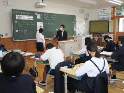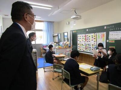 昨日午前、玉名教育事務所より所長はじめ4名の先生方に訪問いただき、全クラスの授業を参観いただきました。