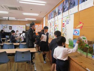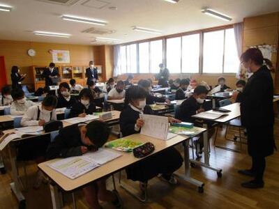 教室いっぱい児童の5年教室は、廊下からも多数の参観ありがとうございます!
