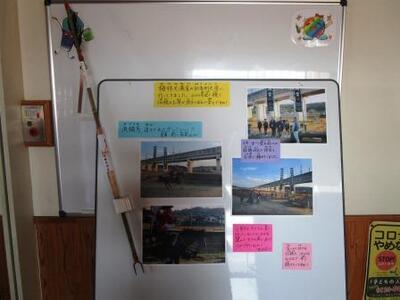 音楽室の壁面には各学年の良い振り返りが掲示してあります。所長が感心して見入っておられました。