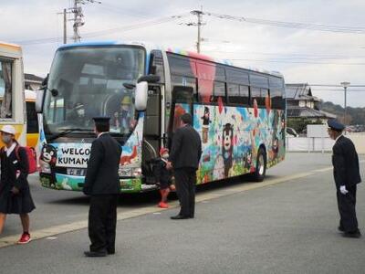 石貫ラインのバスは車検のため、代わりにくまモンラッピングバス!