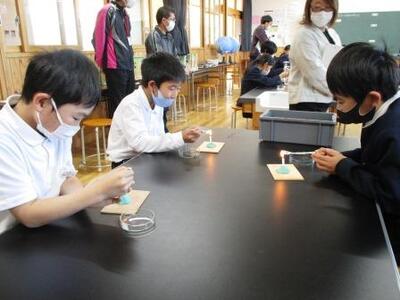 一人に一つずつ準備された実験道具で予想したり確かめたりしていました。どちらの授業もさすが専門性が高く、子供達の瞳が輝く授業でした