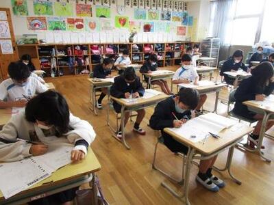 今日から二日間、3年生以上は熊本県学力・学習状況調査に挑戦します。学力の県大会、初日は国語!ガンバレ!