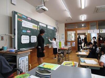 子本先生が初任者研修の研究授業を行いました。球の直径に着目して箱の縦・横の長さを求める学習です。式や図を使って自分の考えを発表する子供達!