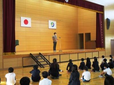 交通安全担当の子本先生から、天草での痛ましい小1男児の交通死亡事故を踏まえ、全体指導をしていただきました。