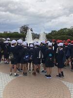 4年生は見学旅行です。「行ってきます!」