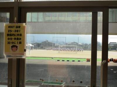 高学年は1時間目から外での練習。WBGTを確認しながらまだまだ熱中症に気をつけます。