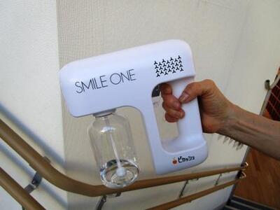 PTAより学年PTAの予算で学校に消毒用の「ミストガン」を15台、購入していただきました。安心・安全で物や身体に無害な消毒液がミスト状で出ますので拭き取りいらず!しかも充電式の電動なので消毒作業がとてもはかどります。ありがとうございます!有効活用し子供達の安全を守ります!