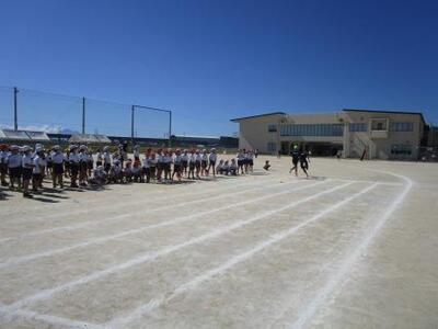 5年生、リレー前の挨拶。来年は君たちが受け継いで!