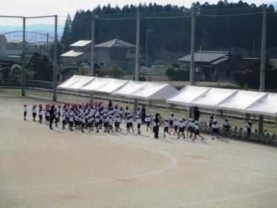 高学年は中学校のグラウンドを借りて広々と走ります。今日も一日元気に頑張りましょう!