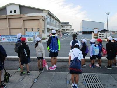 児童が登校してきました。駐車場係の皆様へあいさつ「ありがとうございます!」
