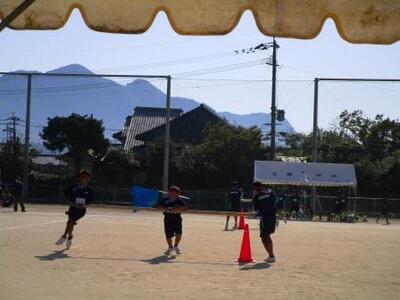 3年生は徒走の後、リレーの練習をしていました。赤、白、とめまぐるしく順位が入れ替わり、大賑わい
