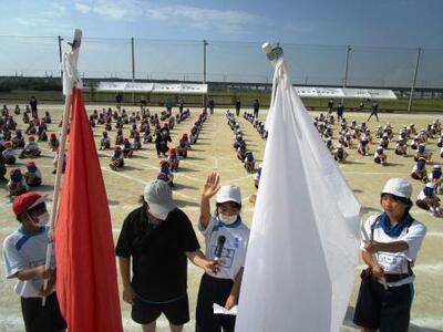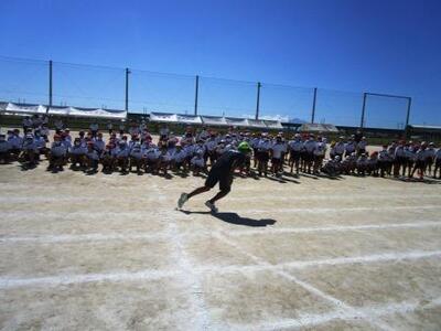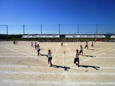 彼岸過ぎても残暑の残る中、中学校の体育大会の練習が熱を増しています。小学校にとっても刺激となります