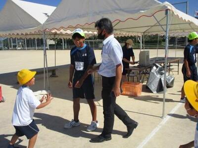 体育委員さんは、金栗タイムのがんばったで賞を届けに…