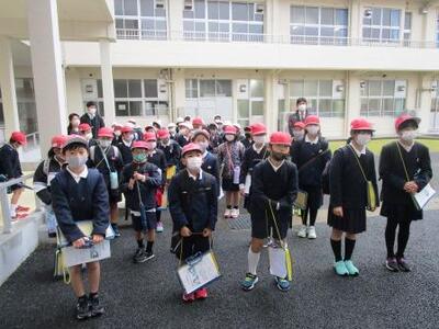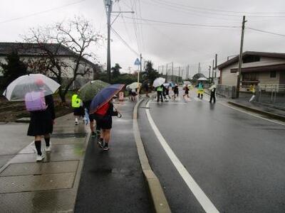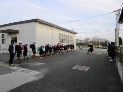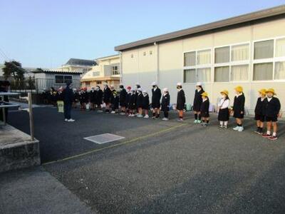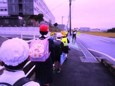 今朝は氷点下の冷え込みでしたが、1年生は登校班と一緒に元気に登校してきました。
