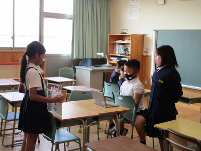 図書委員さんは、給食中の学級を回って図書クイズ。積極的に委員会の活動をしてくれています。