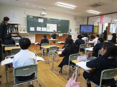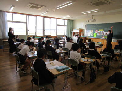 先週金曜日の理科の研究授業。班で話し合ったことを全体共有…中学生は発表の声が教室の隅までしっかり届きます!