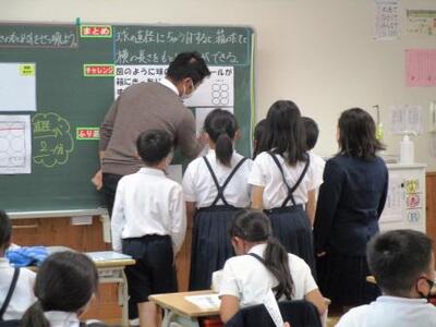 道徳「みんなのために」という授業で、先生が先日の学校運営協議会&PTA本部役員の皆様方の美化作業に触れ、「玉陵小でもみんなのために見えないところで汗を流してくださっている方々がいます。その方々のために皆さんができることは何でしょう。」と問いかけ、考えを深めていました。