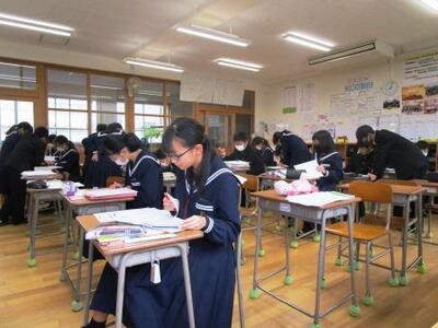 2校時は全学年が学力検査の国語の問題に取り組みました。初めての1年生もがんばっていました。