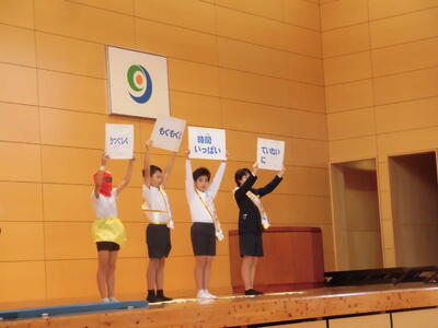 11月の児童集会は、生活・放送委員会でした。「あいさつ、身だしなみ、そうじ」について寸劇での発表でした。