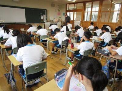 そろそろ前期末。6年生は理科のテストに挑んでいました。