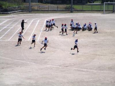 彼岸過ぎても残暑の残る中、中学校の体育大会の練習が熱を増しています。小学校にとっても刺激となります
