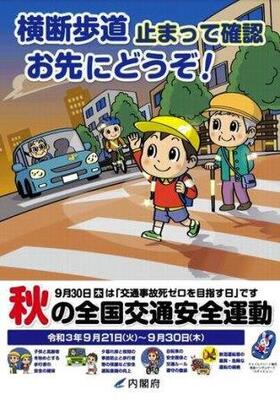ただ今、秋の全国交通安全運動週間です。休みの日も交通安全(特に飛び出し防止、安全な自転車乗り)に努め、来週また元気に会いましょう