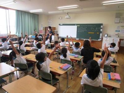 1年生道徳。「当てて!」という気持ちが分かる挙手です。