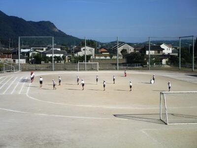 先日の美化作業の続きを5年生と一緒にしていると、練習を終えた中学1年生が「こんにちは!」とあいさつをして整地作業に。