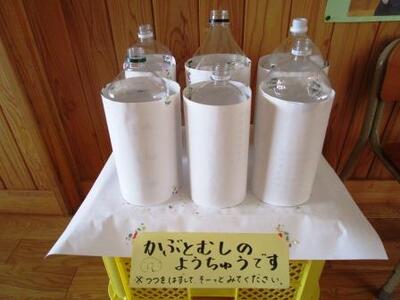 教室の水槽には新しい仲間のかにさん。右手前は脱皮したあとです。上手!