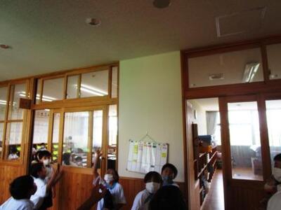 生活科室から逃がすことに(右下の床の上)…見守る1年生が「きっと学校が好きなんだね。」一言に和みました