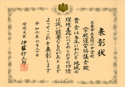 この度、玉陵小中学校 学校運営協議会が環境大臣表彰である「地域環境美化功績者表彰」を受賞されました。永年の取り組みと特に地域を元気にする取り組みである「おもてなしフラワープロジェクト~新玉名駅~ ~県北病院~」を高く評価されました。今後も学校運営協議会を中心に地域住民、児童、生徒による取り組みを継続していきます。