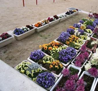 環境委員さんやスクールボランティアの皆様のお世話のおかげでプランターの花も生き生きと