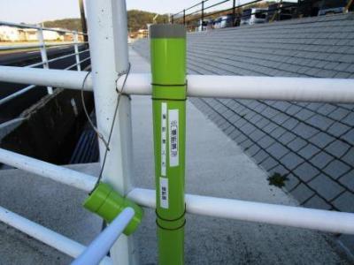 岡区見守りの方お手製の横断旗入れ。蓋付きで雨でも大丈夫なつくり!ありがとうございます!