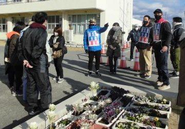今日のあいさつ運動は、梅林地区の皆さんがバス到着後、駆けつけてくれました。一段と冷え込む中でしたが、あいさつ名人がいっぱい!大きな声・元気なあいさつが心まで温めてくれました