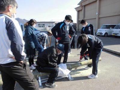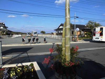18日、学校運営協議会の皆様と中学校生徒会新執行部による門松作りが行われました。材料は全部地元産の立派な物を揃えていただき、竹の裁断・竹垣作り・松竹梅飾り…等、すべて手作りの立派な、しかも温かみのある門松が一対正門前にしつらえられました。伝統の行事を若者に受け継いでいただき、立派な跡取りが育っていきます。おかげで学校も気持ちよくお正月さんをお迎えすることができます。ありがとうございます