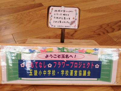 学校運営協議会の皆様方、地域ボランティアの皆様とタイアップした小中学生の地域貢献「ようこそ玉名へおもてなしフラワープロジェクト」、本日午後、新玉名駅へ花の贈呈に行ってきます。その準備として先日植えたプランターに、中学生と一緒にカードを貼り付けました。お客様の笑顔が浮かびます