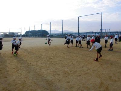 今朝も冷え込みましたが、子供たちは登校後すぐに運動場へ出てきます。サッカーやブランコの姿はよく見ますが、今日は色々な学年ミックスでドッジボールをしていました。楽しそうな姿につい見入ってしまいました時刻になると先生の合図でみんな金栗タイムに駆けていきました