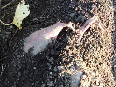 スマイル農園のおいもさんが収穫の時期を迎えました。明日、小・中学校とも芋掘りを実施します。そこで、あいさつ運動の後、学校運営協議会の皆様がつる切りをしてくださいました。すると…そこかしこからおいもさんの姿が…それも、とても大きそうな勇姿です明日が楽しみ~