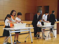 6月13日(木)第1回 小中学校学校運営協議会を開催しました。6名の協議会の皆様参加のもと、学校運営についての説明と小学校・中学校の児童による取り組み報告等を行いました。委員の皆様からは、「地域貢献」という視点でも活動ができるといいなというお話をいただきました。