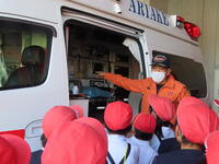 10月17日(火)に3年生の見学旅行がありました。出発式の後、天水町の水本オレンジガーデン、有明防災館・有明消防署に行きました。オレンジガーデンでは、みかんを育てる仕事について学び、おいいしみかんをつくる工夫を教えてもらいました。最後にみかん狩りも楽しみました。有明防災館・有明消防署では、災害から身を守る方法や消防署の仕事について学びました。救急車や消防車も見せてもらい大喜びでした。天気にも恵まれ、実りある学習ができました。