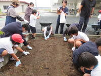 今日の3時間目にさくら、たんぽぽ学級の子どもたちが中学生と一緒にサツマイモの収穫をしました。今年は大きいものがあり、見つけるたびに歓声があがっていました。収穫したサツマイモはみんなで分けて家に持って帰りました。学級運営協議会の皆さんには、事前のつる切りから収穫の指導までお世話になりました。