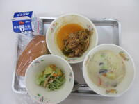 給食メニューは、揚げパン、牛乳、ポトフ、チリコンカン、みかんでした。今日は、みんなが楽しみにしていた揚げパンがありました。みんなおいしそうに食べていました。先生たちの中にも楽しみにしていた先生も多かったようです。