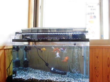 長洲町様のご厚意で、長洲産金魚と水槽セットをいただきました。金魚5匹はどれも珍しい品種だそうで私も初めて見る姿ばかりでした。多目的室前の廊下に設置しています。ご来校の折には、ぜひ会いに行ってみてください。とってもかわいいです玄関の「奇跡の金魚さん」同様、どうぞよろしく