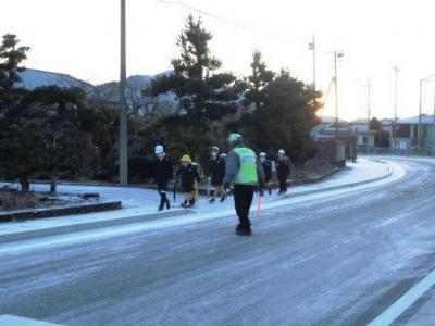 滑らないよう気をつけて登校