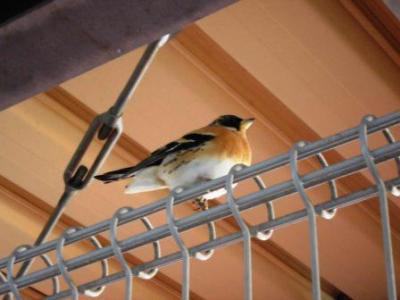プールフェンスに。凍えて動きません