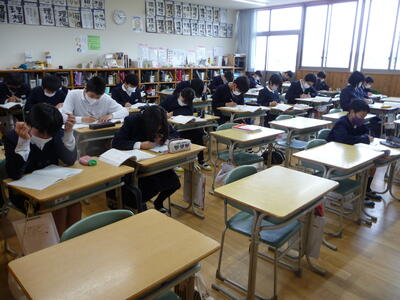 【まとめを頑張ろう・・・6年】算数の時間に、黙々と問題を解いていました。6年生のこの時期は6年間の学習のまとめになります。プリントや教科書を見ながらしっかり復習をしました。
