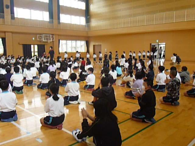 「1年生をむかえる会」では、1年生一人一人が、2~6年生と先生方に対して自分の名前をはきはきと紹介することができました。もう、立派な1年生です。その後、出し物の時間があり、4月に転入した職員にまつわるクイズやじゃんけん大会をして盛り上がりました。